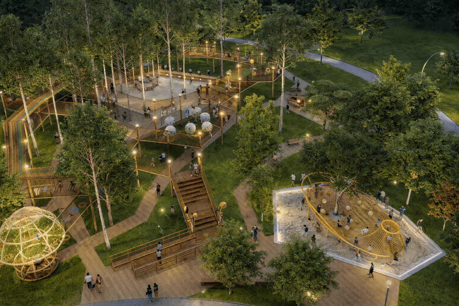 Our innovative system of interconnected nets offers unparalleled freedom of movement and endless possibilities for aerial exploration. Designed with safety and durability in mind, the Aerial Net Park provides a thrilling and engaging environment for individuals and groups to challenge themselves, build confidence, and create unforgettable memories.