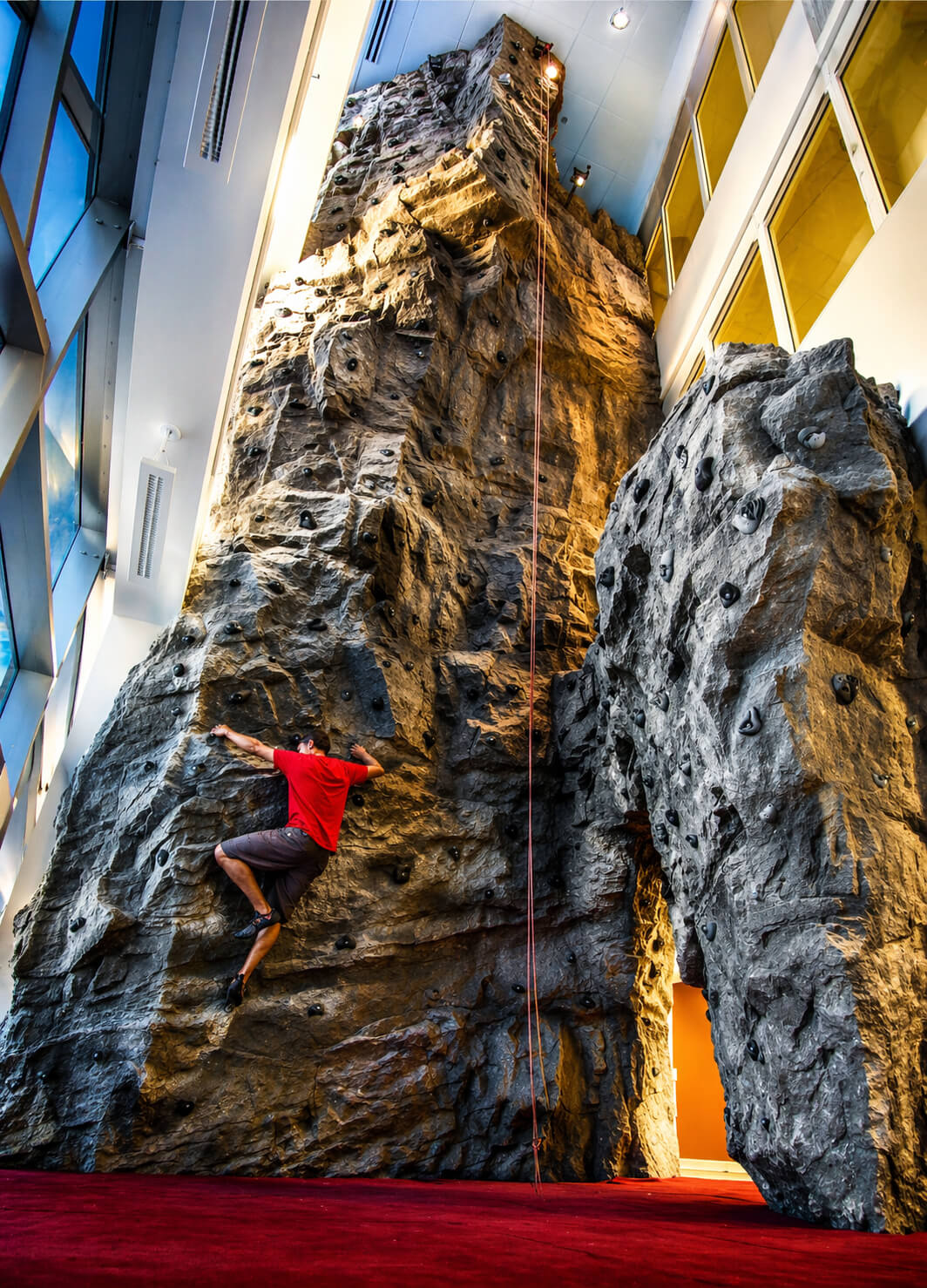Our in-house designers are ready to design and sculpt a natural rock wall that satisfies you and your customers, climb after climb. Giant indoor mountains with undulating cliffs and ledges, our rock walls provide stunning beauty and a naturalistic look and feel. Like our PlayClimb and SportClimb walls, our natural rock walls offer climbers the opportunity to climb using built-in handholds and footholds. Or, we can incorporate T-nut placements to attach a variety of climbing holds, available in a variety of styles and colors. We can also customize the color of your natural rock wall, to give it your own personal touch.