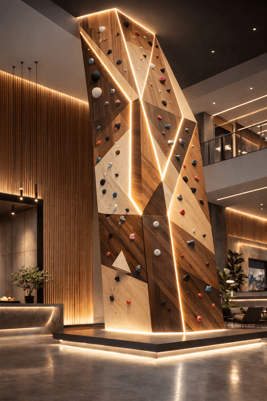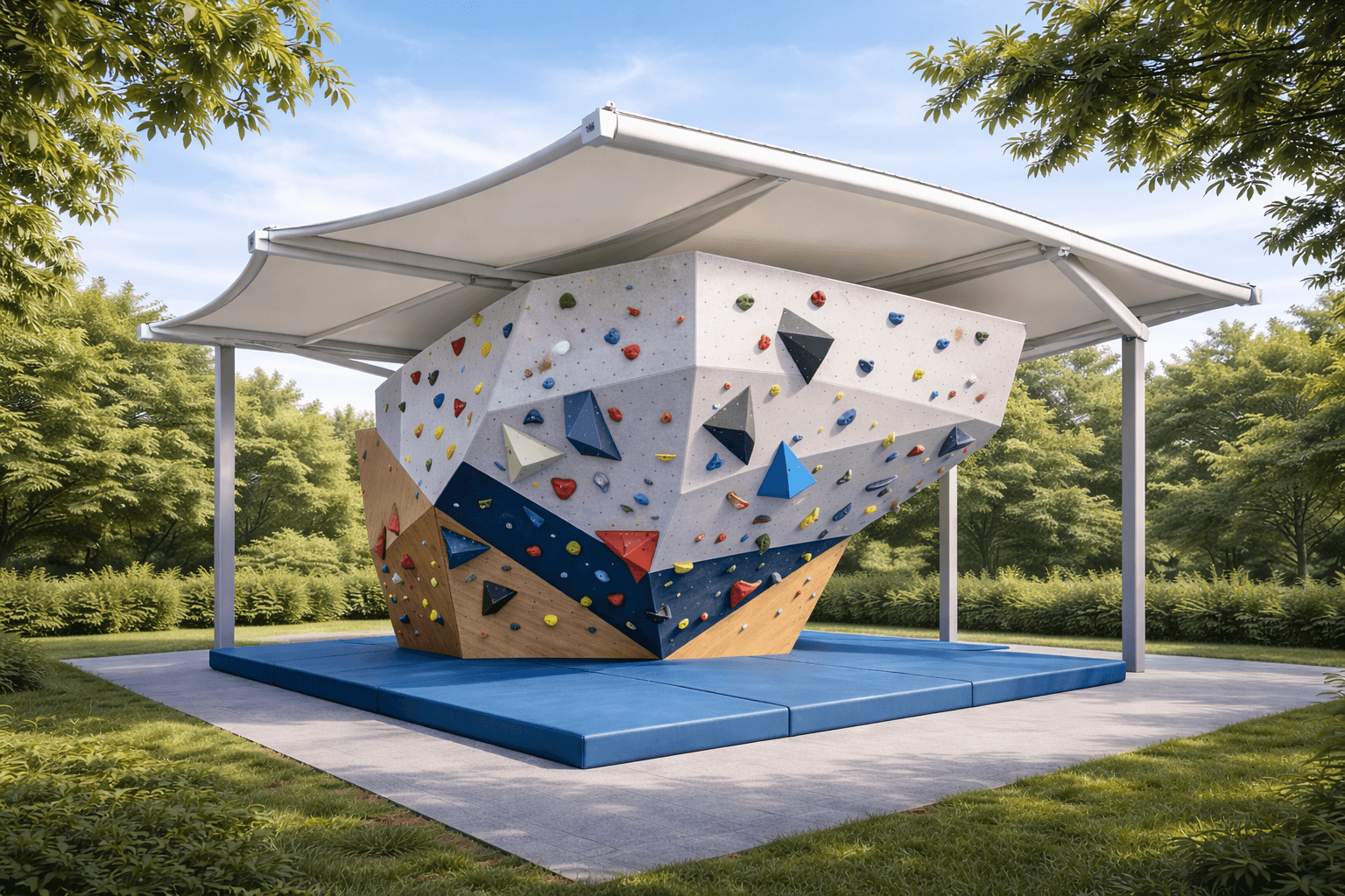 - Architectural Boulders: Custom climbing structures crafted from angular panels, mimicking natural rock formations with modern flair.