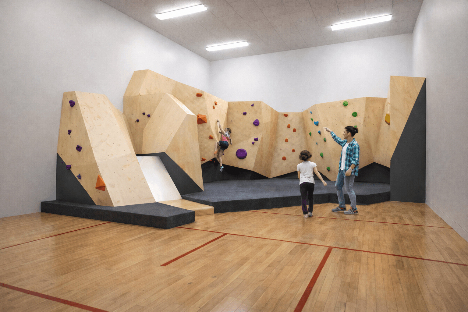 - Vibrant Routes: Color-coded climbing holds offer varied challenges—from beginner-friendly traverses to advanced overhangs.