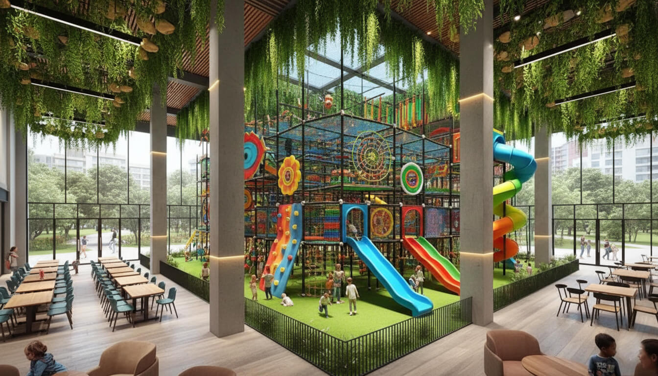 Imagine a vibrant, indoor playground where kids explore themed play structures, parents relax knowing safety comes first, and your facility sees more return visits and revenue.